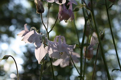 Kasvupaikka härkkien seurassa on puolivarjoinen ja ehkä hieman liian kuiva akileijoille. Ne voisivat kasvaa rehevämmin tuoreemmassa ja multavammassa maassa. Lehtomaista maastoa löytyisi takapihaltamme, jossa hallitsevat saniaiset ja ikävä kyllä myös palsamit. Olen saanut lemmikin leviämään siihen suuntaan, joten miksei akileijakin sinne asettuisi.